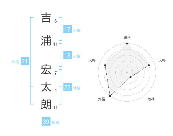 吉浦 宏太朗さんを姓名の画数から五運を鑑定