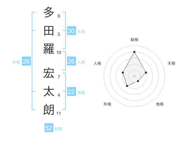 多田羅 宏太朗さんを姓名の画数から五運を鑑定