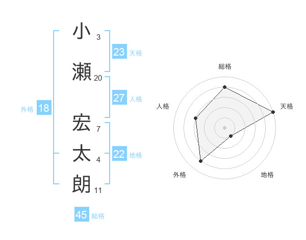 小瀬 宏太朗さんを姓名の画数から五運を鑑定