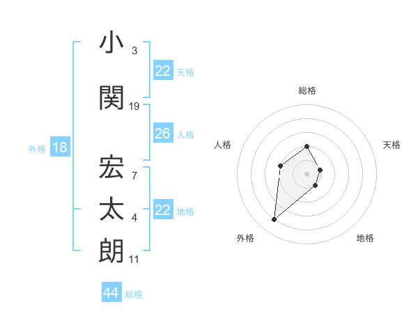 小関 宏太朗さんを姓名の画数から五運を鑑定