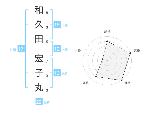 和久田 宏子丸さんの総格は29画の4点!