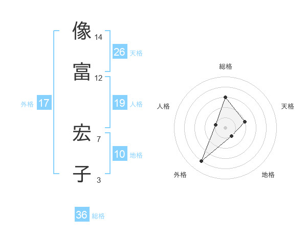 像富 宏子さんの総格は36画の3点!