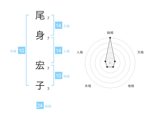 尾身 宏子さんを姓名の画数から五運を鑑定