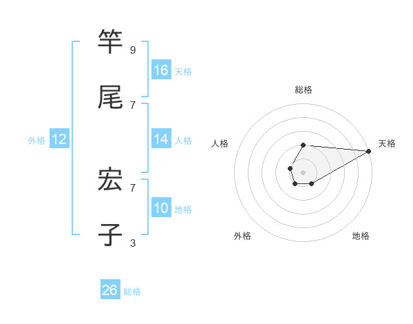 竿尾 宏子さんを姓名の画数から五運を鑑定