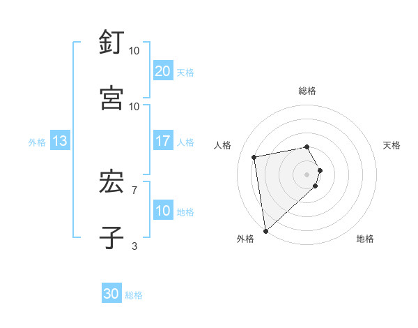 釘宮 宏子さんを姓名の画数から五運を鑑定