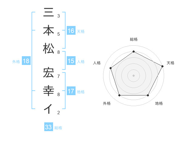 三本松 宏幸イさんを姓名の画数から五運を鑑定