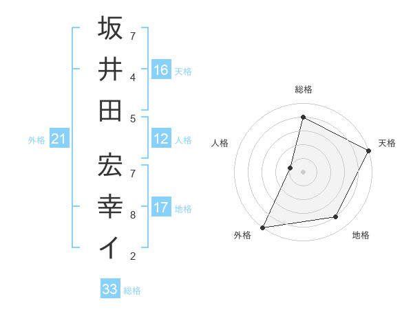 坂井田 宏幸イさんを姓名の画数から五運を鑑定
