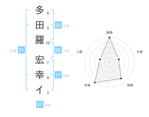 多田羅 宏幸イさんを姓名の画数から五運を鑑定