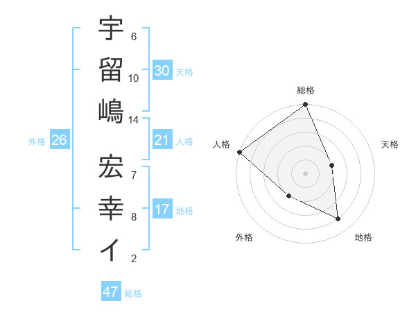宇留嶋 宏幸イさんの総格は47画の5点!