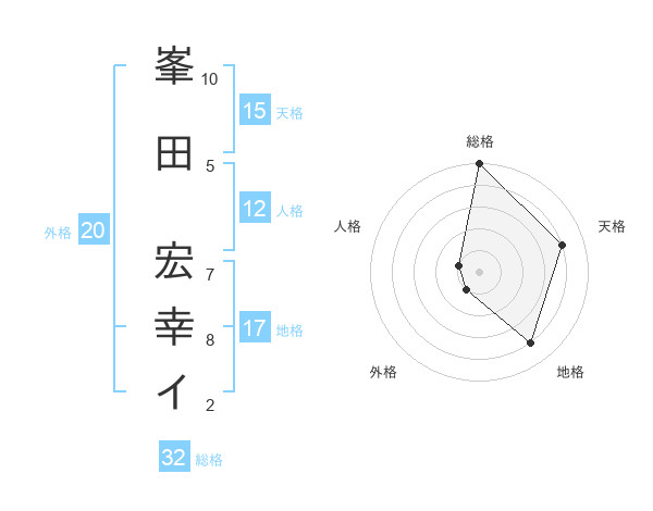 峯田 宏幸イさんを姓名の画数から五運を鑑定