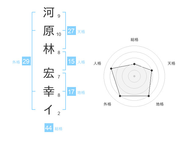 河原林 宏幸イさんの総格は44画の2点