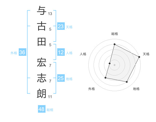 与古田 宏志朗さんの天格は23画の5点!