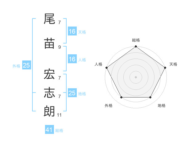 尾苗 宏志朗さんを姓名の画数から五運を鑑定