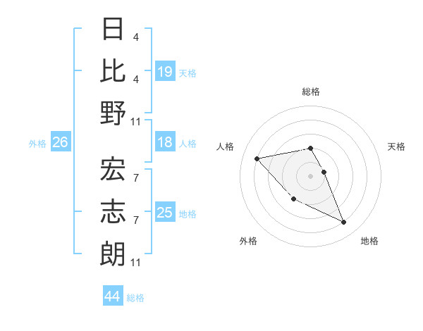 日比野 宏志朗さんの総格は44画の2点!