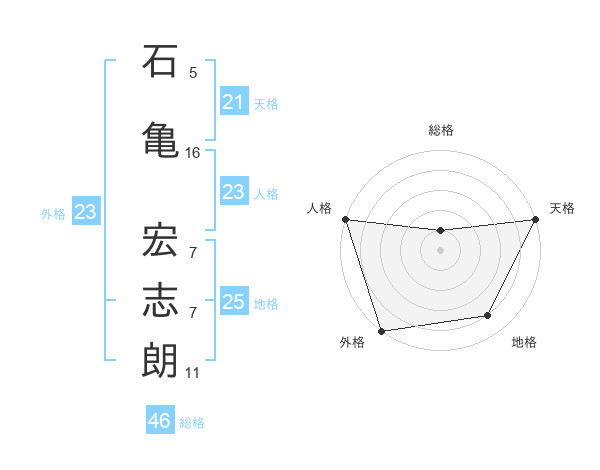 石亀 宏志朗さんを姓名の画数から五運を鑑定