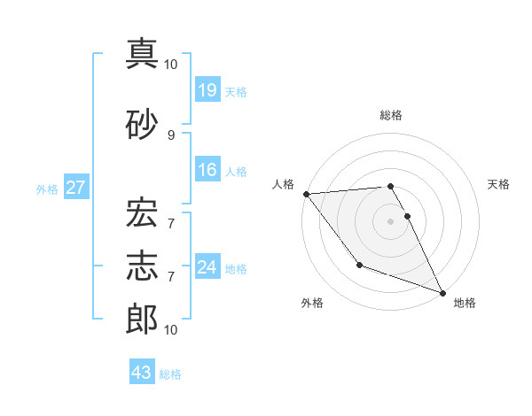 真砂 宏志郎さんを姓名の画数から五運を鑑定