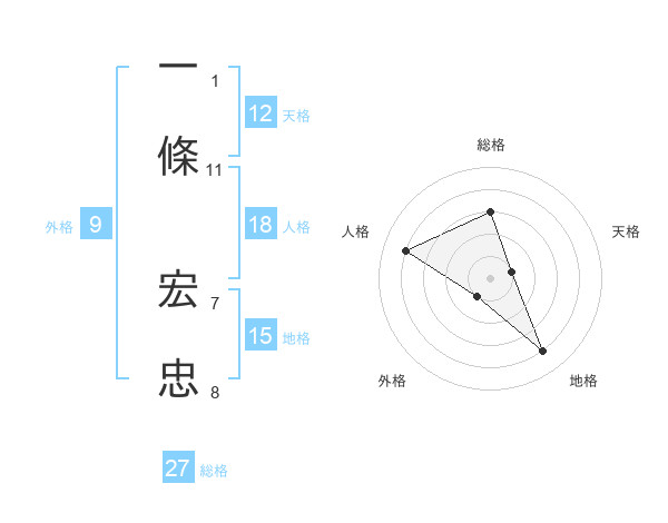 一條 宏忠さんを姓名の画数から五運を鑑定