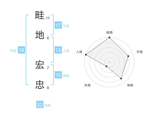 畦地 宏忠さんを姓名の画数から五運を鑑定