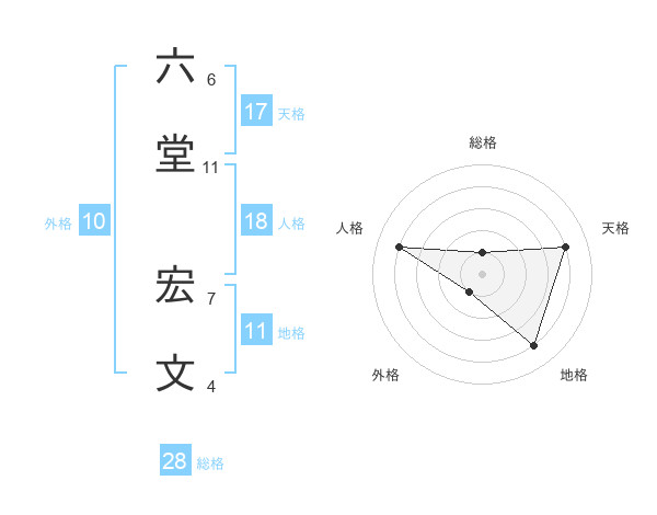 六堂 宏文さんの天格は17画の4点!