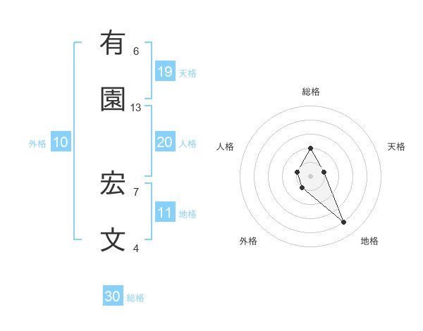 有園 宏文さんの総格は30画の2点!