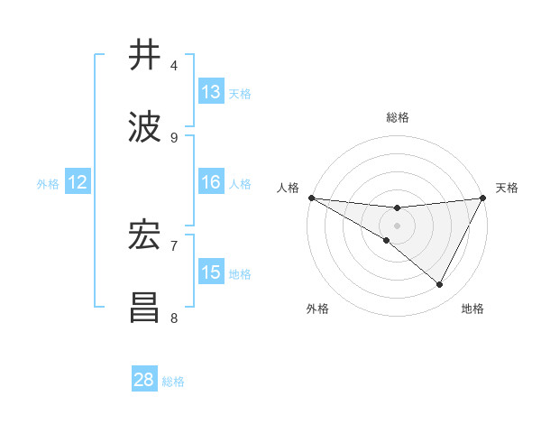 井波 宏昌さんの天格は13画の5点!