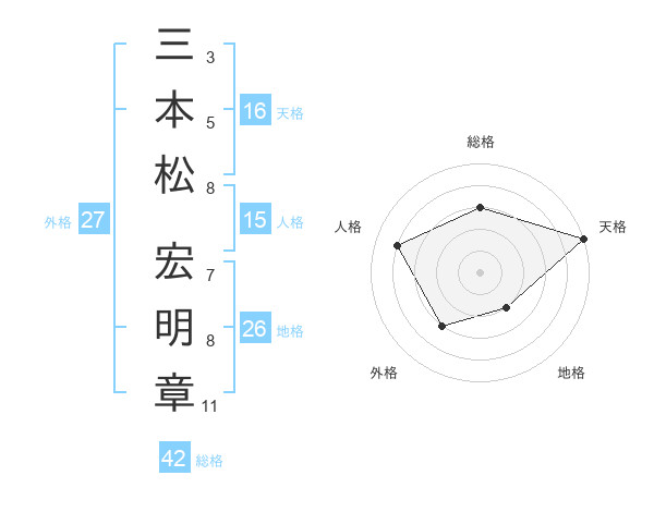 三本松 宏明章さんの総格は42画の3点!