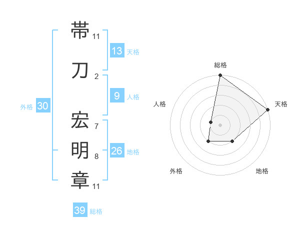 帯刀 宏明章さんを姓名の画数から五運を鑑定