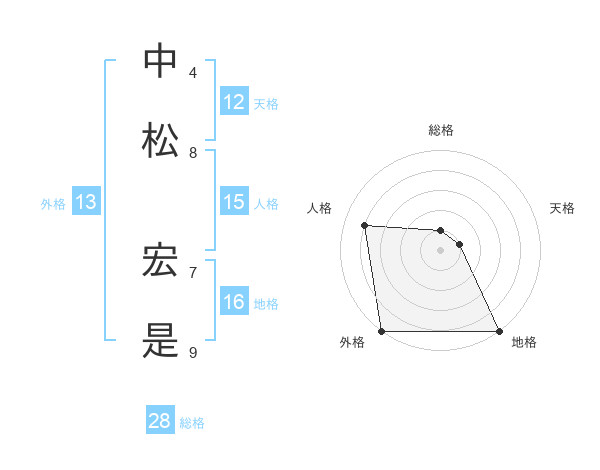 中松 宏是さんの外格は13画の5点!