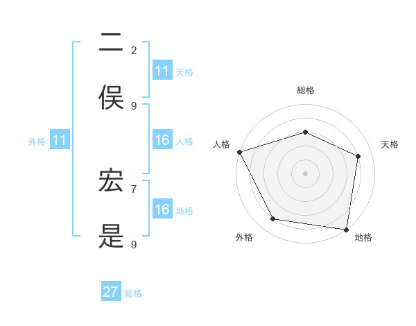 二俣 宏是さんを姓名の画数から五運を鑑定