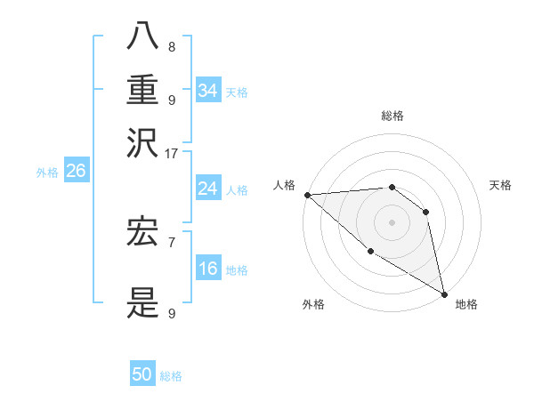 八重沢 宏是さんの総格は50画の2点!