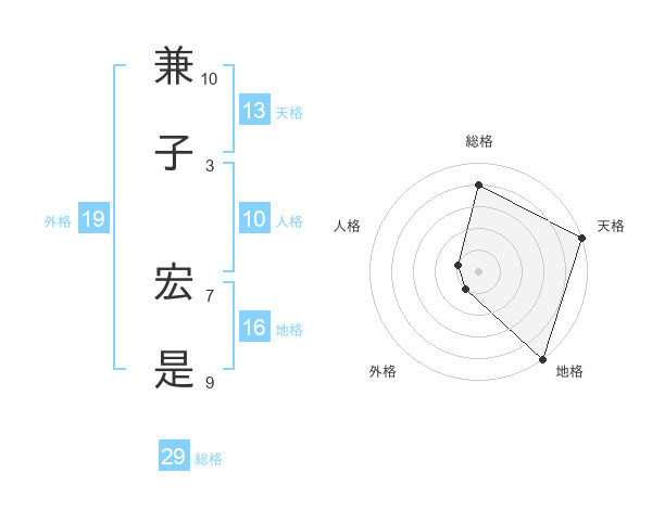 兼子 宏是さんの総格は29画の4点!