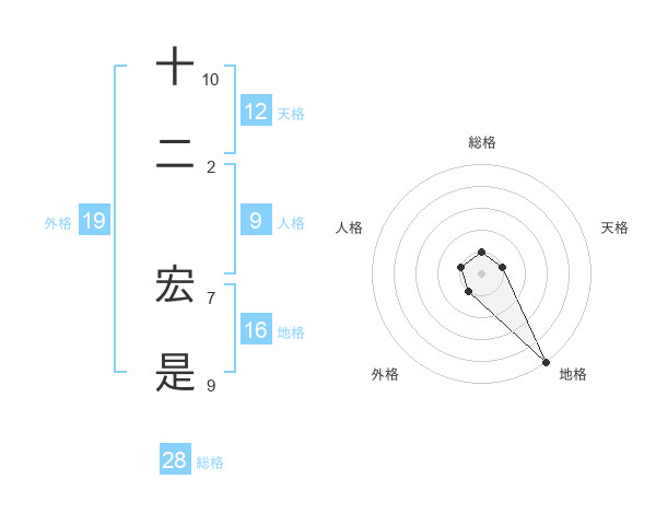 十二 宏是さんの総格は28画の1点!