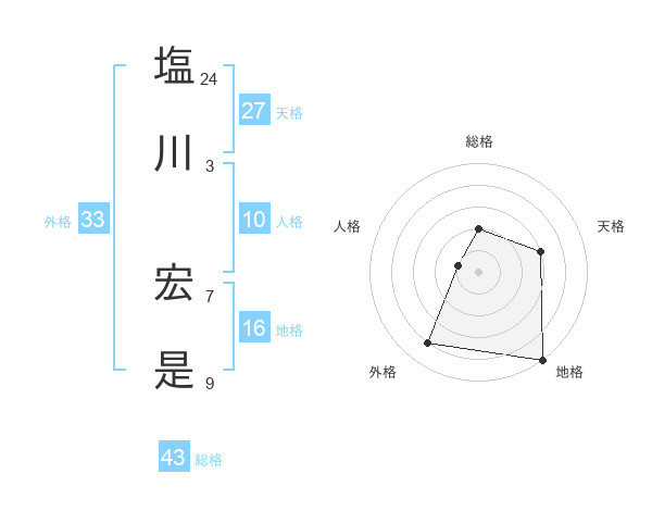 塩川 宏是さんを姓名の画数から五運を鑑定