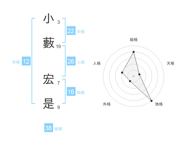 小藪 宏是さんの総格は38画の4点!