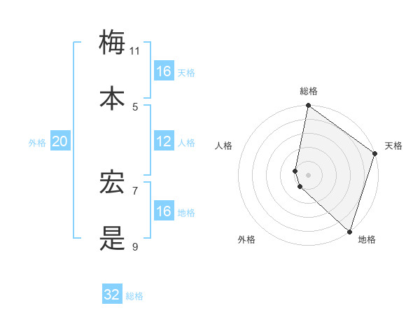 梅本 宏是さんの天格は16画の5点!