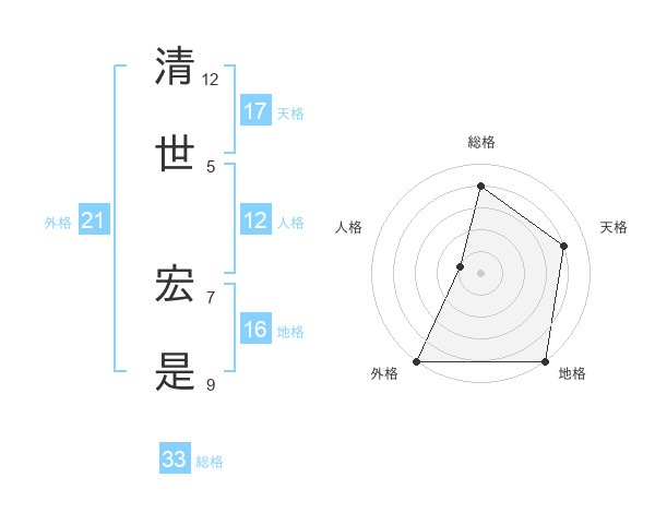 清世 宏是さんの天格は17画の4点!