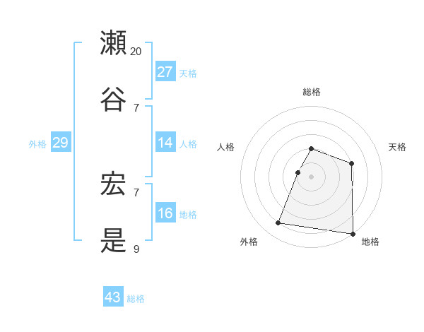 瀬谷 宏是さんの総格は43画の2点!