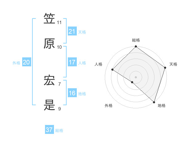 笠原 宏是さんの天格は21画の5点!