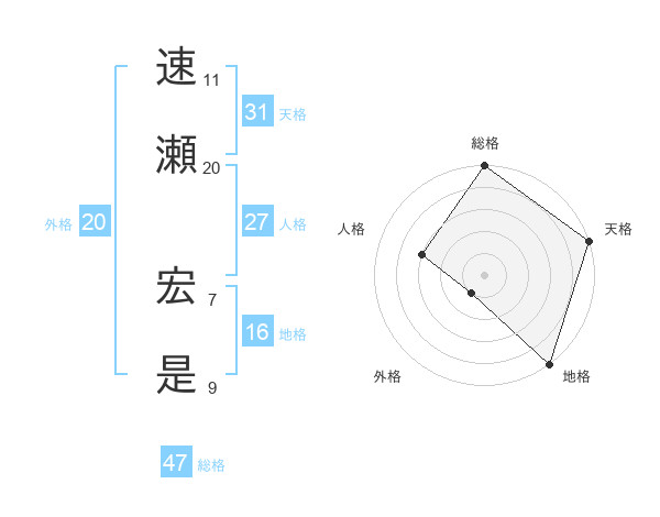 速瀬 宏是さんの天格は31画の5点!