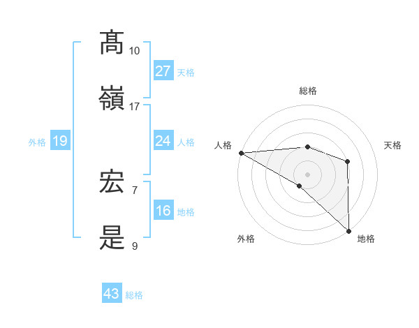 髙嶺 宏是さんを姓名の画数から五運を鑑定