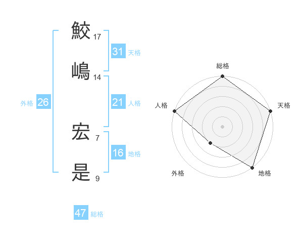 鮫嶋 宏是さんの総格は47画の5点!