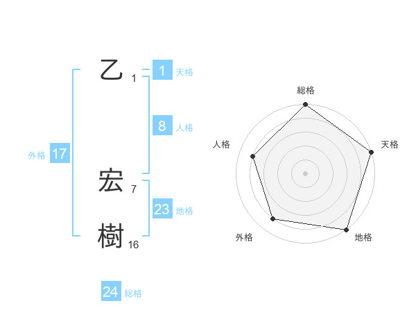 乙 宏樹さんを姓名の画数から五運を鑑定