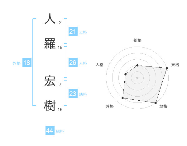 人羅 宏樹さんの天格は21画の5点!