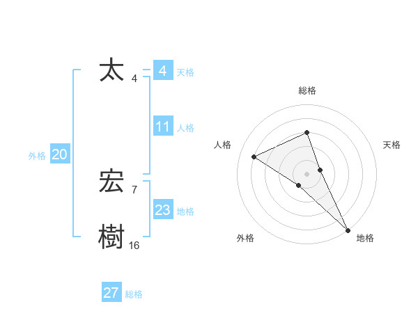 太 宏樹さんの総格は27画の3点!