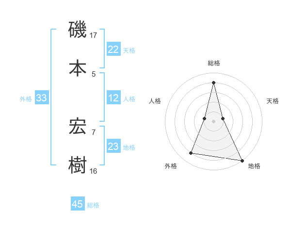 磯本 宏樹さんの総格は45画の4点!