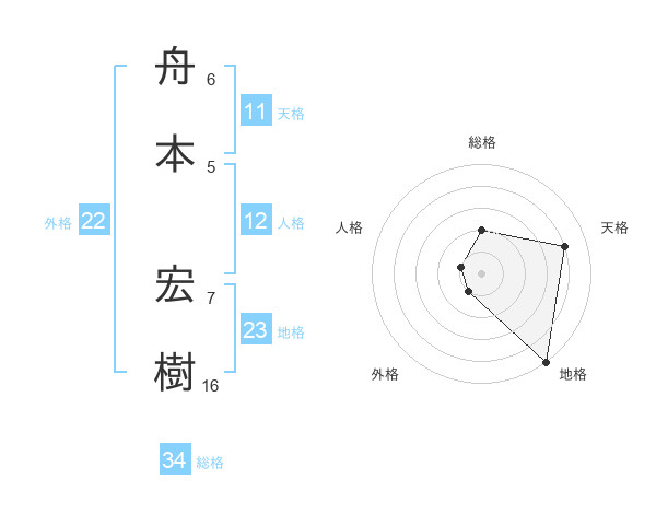 舟本 宏樹さんの総格は34画の2点!