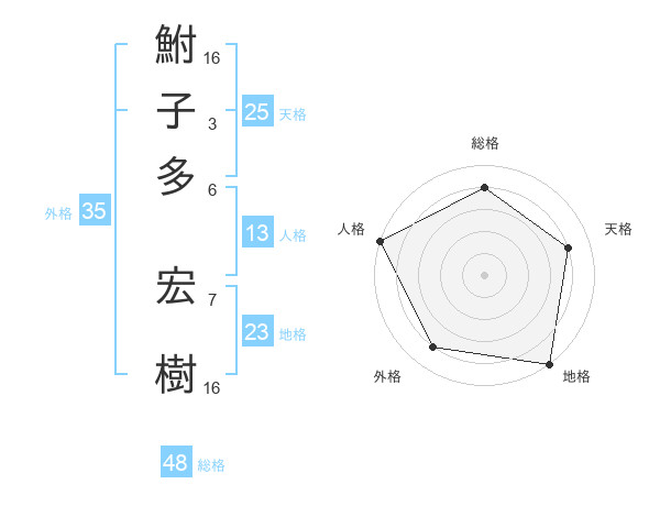 鮒子多 宏樹さんを姓名の画数から五運を鑑定