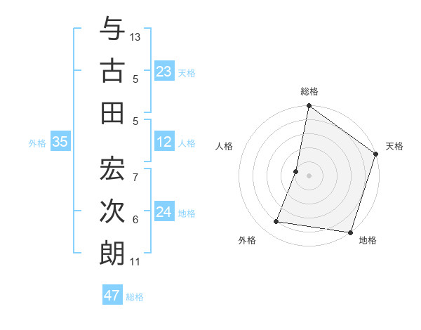 与古田 宏次朗さんを姓名の画数から五運を鑑定