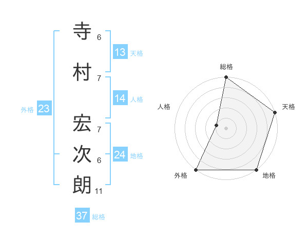 寺村 宏次朗さんの総格は37画の5点!