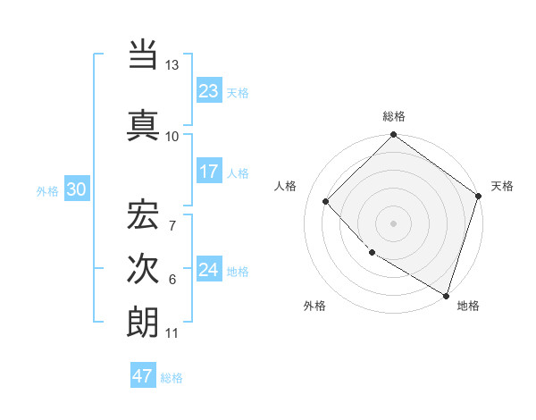 当真 宏次朗さんの総格は47画の5点!